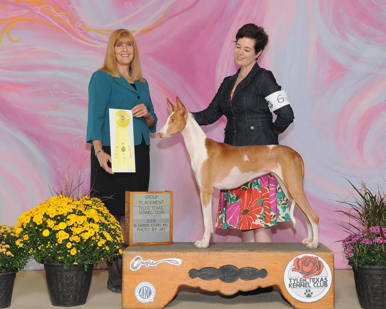 Our second litter was Ibizan Hounds, whelped in May of 2016. The first puppy shown from this litter, CH GDAB Everything is Awesome, won Best Puppy in 4 to 6 Show at his first show. Another puppy from that litter, GCH GDAB Everything Zen TKN, won points the very first time he was shown at 6 months of age, and won three 5 point majors during the 2017 IHCUS National Specialty week, including Winners Dog at the National. He earned his first Hound Group win 5 days before his 2nd birthday. GCH GDAB You've Got Everything Now SC TKN earned all champion points from the Bred by Exhibitor class and has multiple group placements under his belt (collar!).