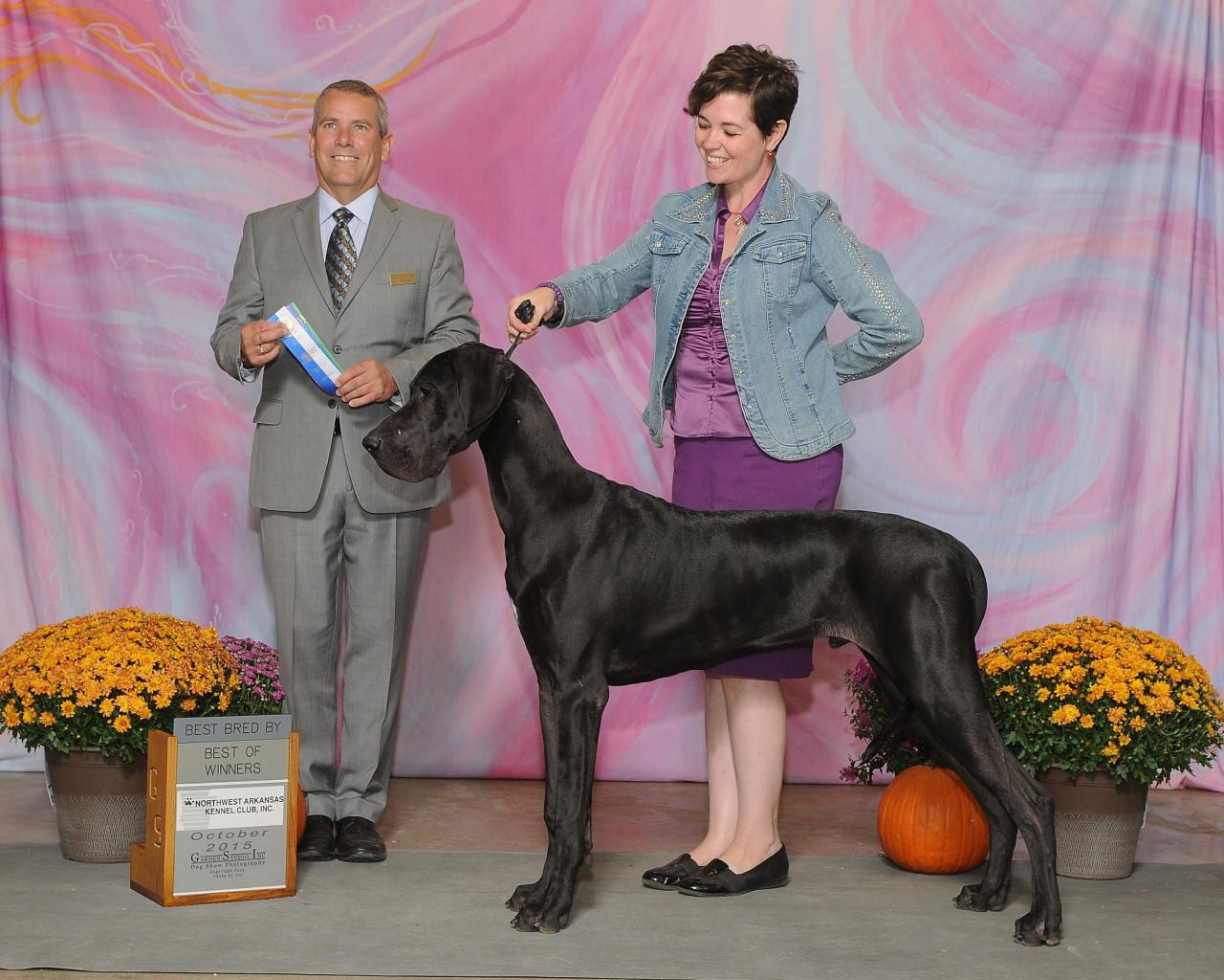 Our first litter was Great Danes, whelped in January of 2015. Two of the 9 month old puppies won their classes at the 2015 Great Dane Club of America National Specialty.