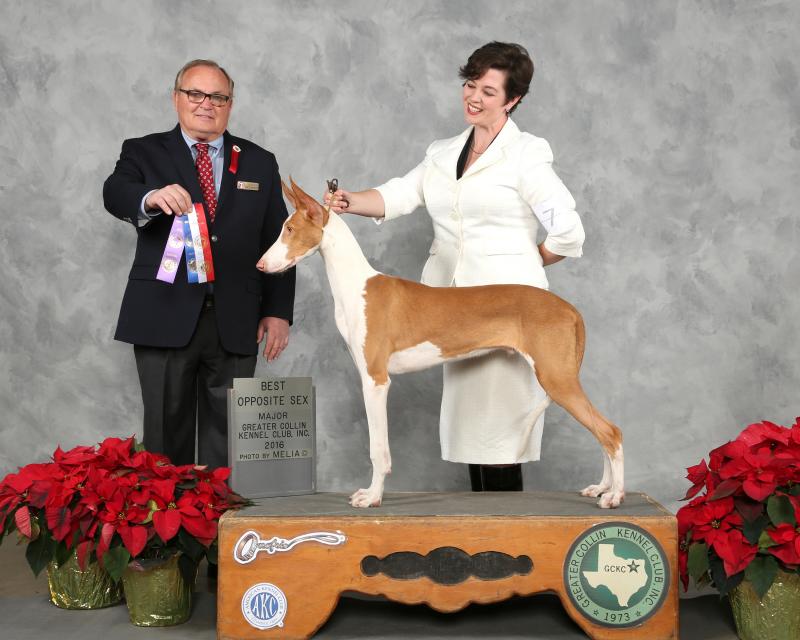 December, 2016 - Joaquin's first points at 6 months of age, a 5 point major from the Bred-By-Exhibitor class, from judge Ken J. Murray.