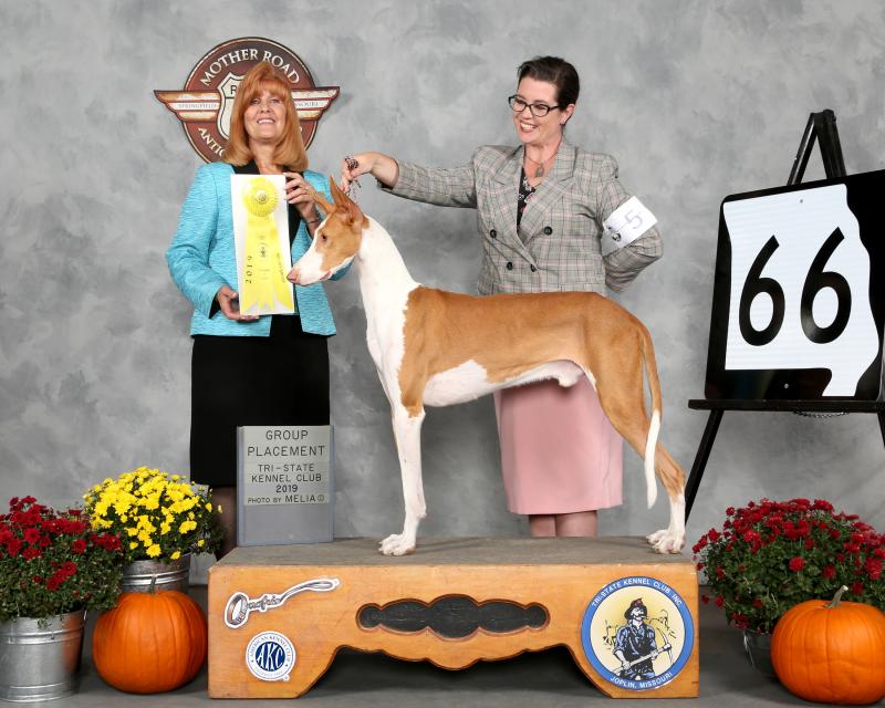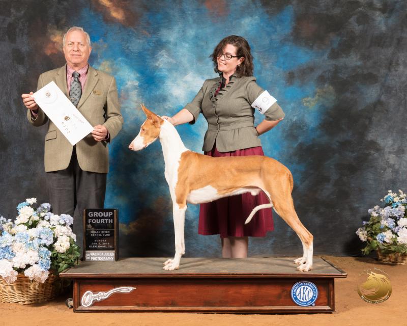 January 6, 2019 - Best of Breed win for a Grand Champion major, from judge Ms. Ann Roth and Group Placement from Breeder Judge, Dr. Eric Liebes